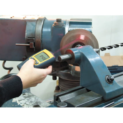 Dokładne czerwone źródło światła LED (smuga laserowa) razem z odbijającym pasem, niekontaktowe pomiary mogą być wykonane bezpiecznie z odległości do 40cm 153/4") od celu. Dla mierzenia w rpm i rps.Zakres pomiaru: 100 do 30000rpm/1.7 to 500rps.