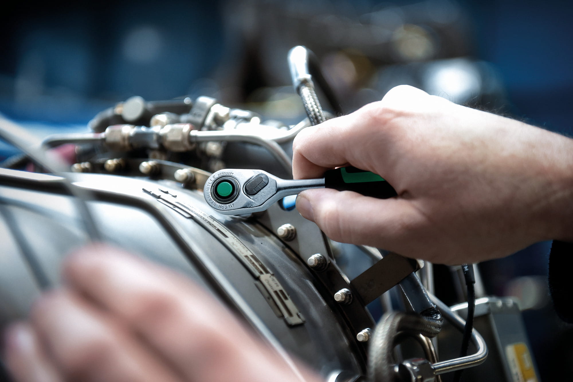 Grupa narzędziowa Stahlwille:| o zmiennym kierunku pracy, 80 zębów, z modułem zatrzaskowym QuickRelease i 2-komponentową rękojeścią, do pracy w ograniczonych przestrzeniach, z kątem pracy tylko 4,5°, wykonanie bezśrubowe zapobiega FOD, DIN 3122/ISO 3315, niemiecki wzór użytkowy (DBGM). |