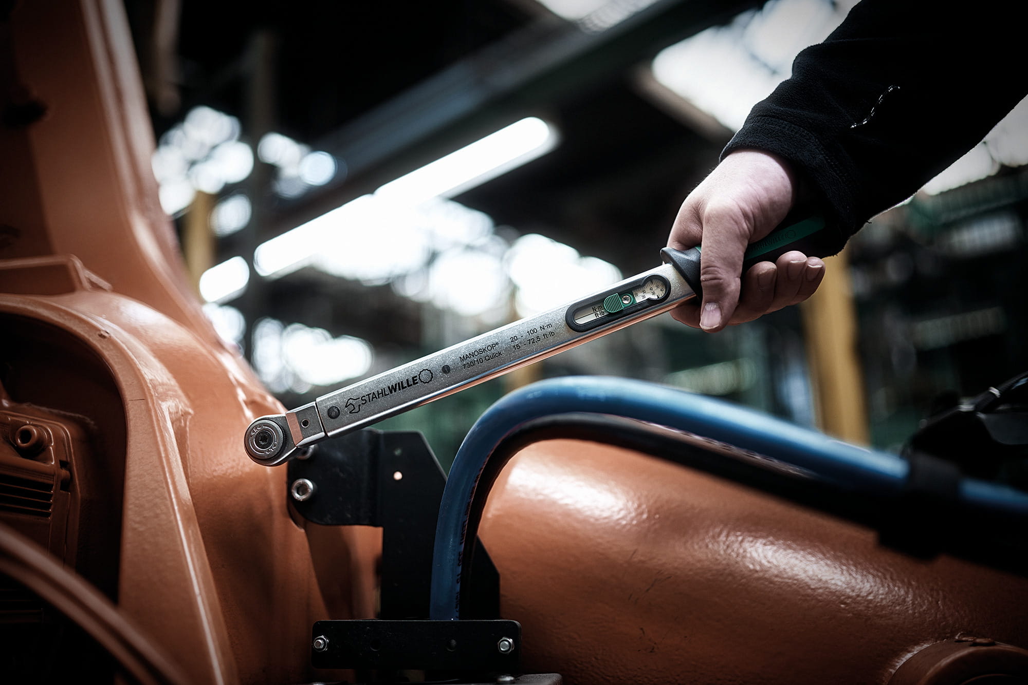 Jedynym momentem, w którym klucz dynamometryczny Stahlwille podlega obciążeniom jest moment rzeczywistego pomiaru.