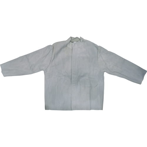 Zapinana kurtka dla pełnej ochrony od szyi do talii, przed rozpryskami spawalniczymi i iskrami przy szlifowaniu. Z zewnętrzną boczną kieszenią, dla zwiększenia komfortu karczek jest wyłożony miękką skórą split.