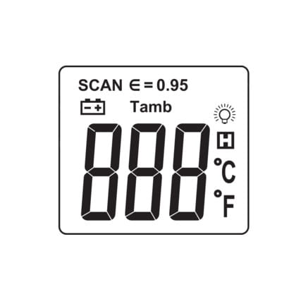 Kieszonkowy termometr wykorzystujący technologię laserową pojedynczej kropki podczerwieni, potrafi natychmiast wyświetlić temperaturę powierzchni. Funkcje°C /°F wybierane w zakresie pomiarowym od -20°C do 270°C (od -4°C do 518°F). Posiada funkcję pomiaru temperatury otoczenia (TAMB), pomiaru mocy światła odbitego/odblasku i funkcję zatrzymania wyniku, sygnalizacja niskiego napięcia baterii oraz uchwyt taśmowy na rękę.Wymaga: 2 baterie AAA