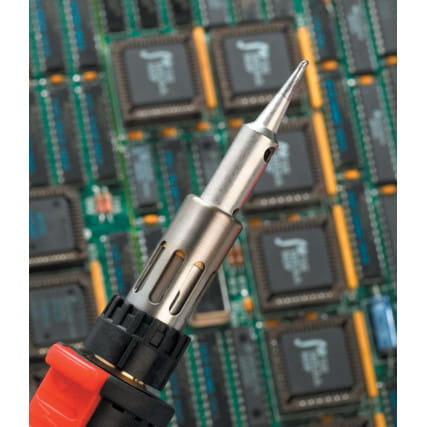 Dostarczany w mocnym pudełku z tworzywa sztucznego.Zawartość: Lutownica butanowa BSO75, gąbka do czyszczenia grotu, osiem wymiennych końcówek: groty 2,4 mm z jednostronnym spłaszczeniem, 1 mm, 2,4 mm, 3,2 mm, 4,8 mm z dwustronnym spłaszczeniem, dmuchawa gorącego powietrza, grot do przecinania na gorąco i deflektor gorącego powietrza.