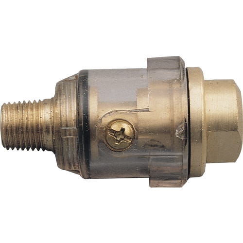 Naolejacz aplikuje olej bezpośrednio do kanału węża, dzięki czemu zabezpiecza twoje narzędzia pneumatyczne przed korozją. Przeźroczysta powłoka pozwala kontrolować poziom oleju. Wykonanie - mosiądz.