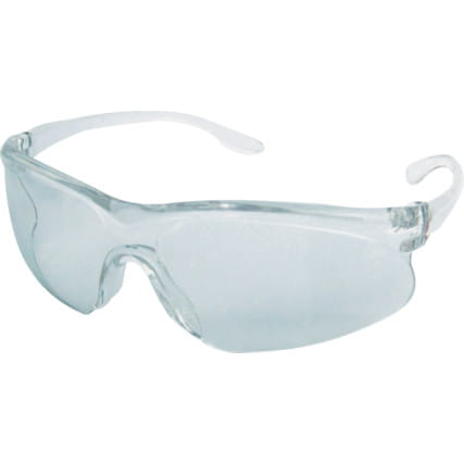 Okulary ochronne z jednoczęściowymi poliwęglanowymi szkłami są lekkie i posiadają szkła odporne na zarysowania.