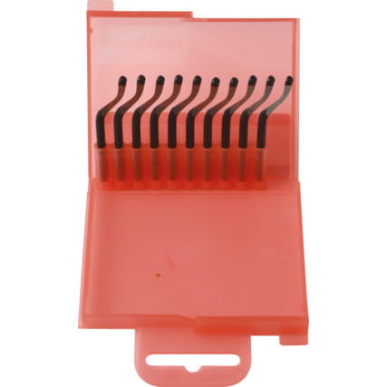 Wytrzymałe ostrze ze stali HSS do krawędzi prostych i krawędzi otworów, trzpień typu E z częścią skrawającą o geometrii B10 do stosowania do materiałów dających przy skrawaniu wiór ciągły oraz do otworów o minimalnej średnicy 2mm.