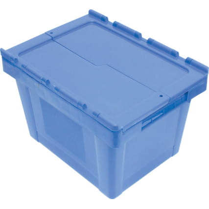 Pojemniki Euro z polipropylenu o wysokiej wytrzymałości, ze wzmocnionymi narożnikami i obrzeżem oraz integralną dopasowaną pokrywą na zawiasach. Gładka płaska podstawa pozwala na bezgłośne transportowanie na przenośnikach, co powoduje, że pojemniki te nadają się do stosowania w centrach dystrybucyjnych lub magazynach hurtowni. Wszystkie pojemniki wyposażone są w ergonomiczną rączkę i mogą być plombowane przywieszkami zabezpieczającymi.