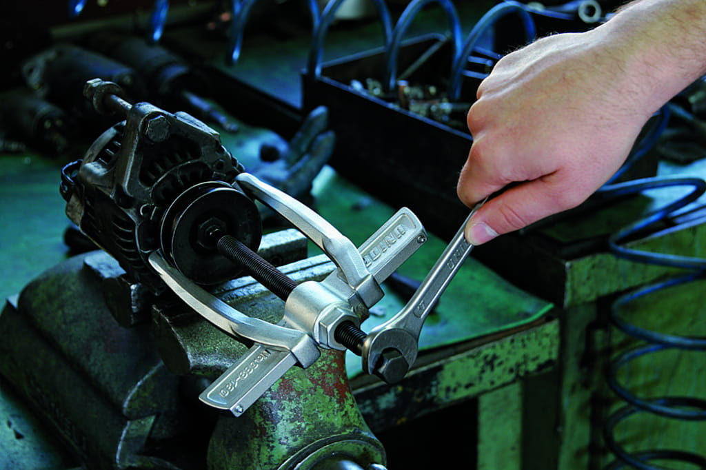 - poprzez możliwość dwustronnego zamocowania ramienia, ściągacz może być użyty jako wewnętrzny lub zewnętrzny