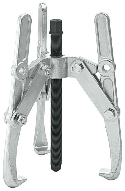 Grupa narzędziowa Stahlwille:| trójramienny, z bardzo szerokim zakresem rozpiętości, ocynkowany; do zdejmowania kół zębatych, łożysk kulkowych, kół pasowych i podobnych detali z wału lub osi; poprzez przełożenie łap można stosować jako ściągacz wewnętrzny i zewnętrzny; do wyjmowania łapy odchyla się i przekłada wrzeciono; silne działanie dźwigni powoduje mocne przyleganie łapy do zdejmowanego lub wyjmowanego detalu. |