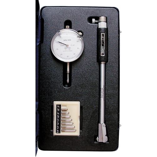 Średnica tarczy zegarowej 29mm 1 1/8"Użyteczne do szybkiego dokładnego pomiaru wielkości, współosiowości zbieżności itd. z szeroką gamą otworów. Do użycia w warsztacie i do kontroli. Wszystkie modele mają jedno stałe i jedno ruchome kowadełko i samo nastawną śrubę pomiarową. Punkt odniesienia może być ustawiony przez użycie a stałego pierścienia lub mikrometru. Należy wyzerować średnicówkę do tego punktu przez obrót tarczy czujnika ustawiając ją na 0. Aby sprawdzać tolerancje otworu należy ustawić wskaźniki tolerancji wg życzenia. Kowadełka maja sprężyny rozszerzające się w otworze. Dokładny odczyt zapewni zachowanie równoległości trzpienia czujnika z osią otworu. Wszystkie modele mają wymienne kowadełka (przedłużacze) do pomiaru pełnego zakresu otworów.