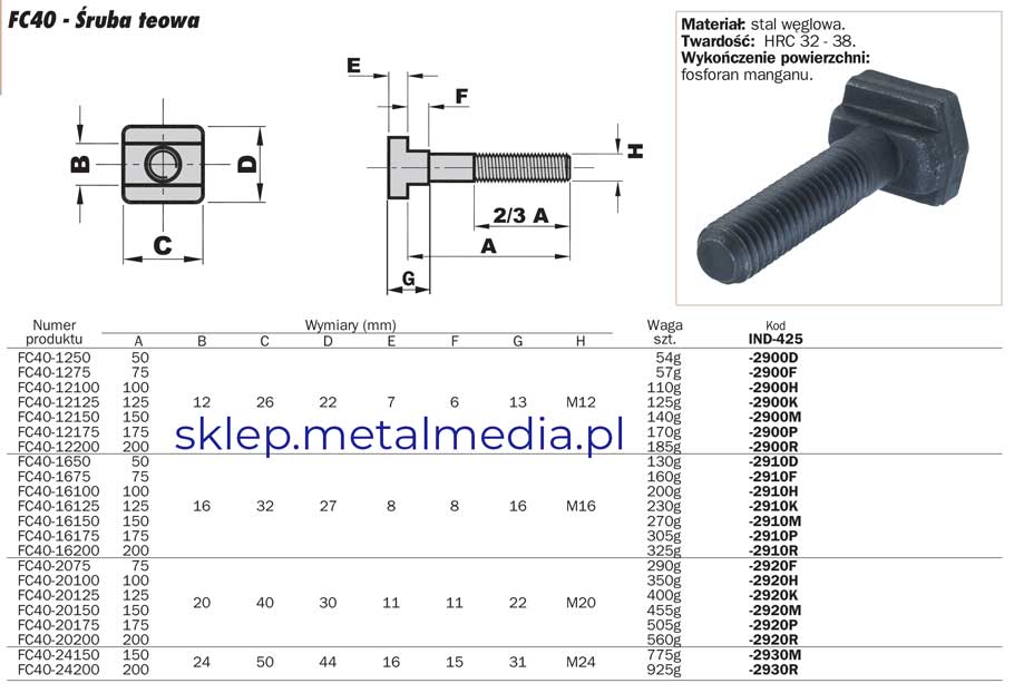 Śruba teowa FC4016200 M16x200mm Indexa IND4252910R