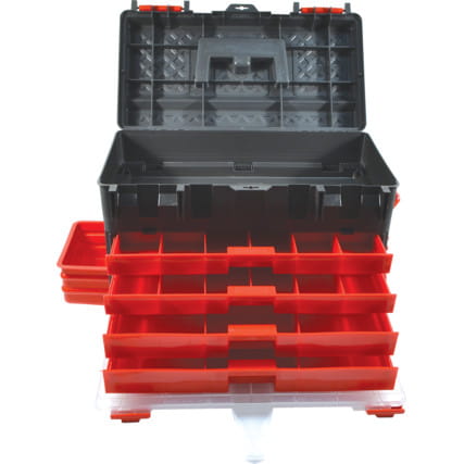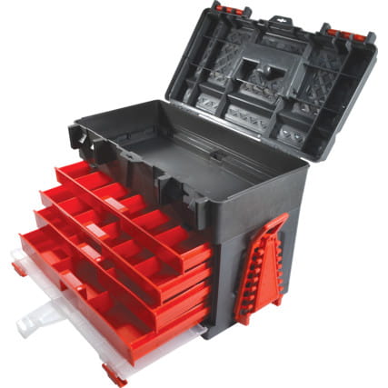 - Imponująca liczba 29 przegródek do przechowywania niezbędnych narzędzi ręcznych, elektronarzędzi i mniejszych elementów