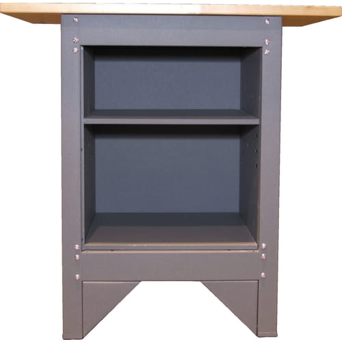 Wytwarzana z zimnowalcowanej blachy stalowej, z trwałą odporną na korozję powłoką proszkową (lakierowana proszkowo). Trwała solidna drewniana powierzchnia robocza. Dwie półki. Regulowane nóżki. Dostarczana wraz z instrukcją montażu.