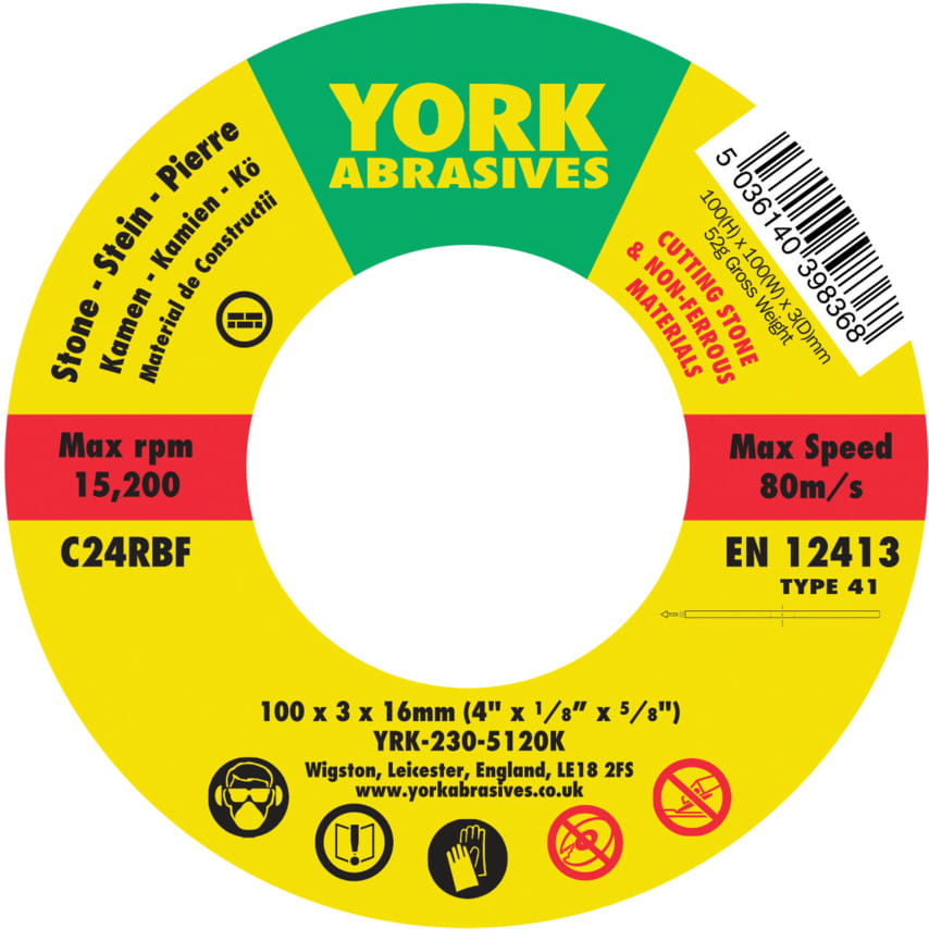 100x3x16 C24RBF FLAT CUTTING DISC T41 York Abrasives YRK2305120K