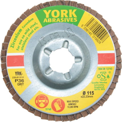 Tarcza ścierna, korund cyrkonowy 115x22mm P36 York Abrasives YRK2208110K