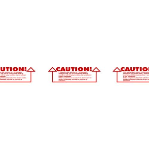 Winylowe samoprzylepne taśmy o cichym działaniu z czytelnymi nadrukami. Nadruki zawierają instrukcje manipulowania oraz informacje kontroli jakości w celu ostrzeżenia przewoźników i zapewnienia, że przesyłki będą odpowiednio delikatnie traktowane, aby bezpiecznie dostarczyć delikatne towary lub płyny. Wyraźne czerwone nadruki na białym tle. Może być nakładana za pomocą pistoletu lub dyspensera stołowego.