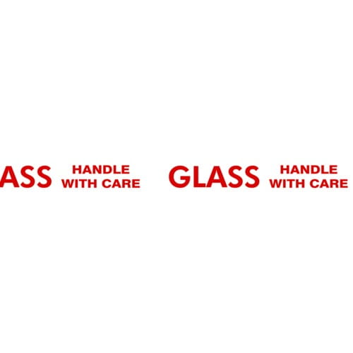 Winylowe samoprzylepne taśmy o cichym działaniu z czytelnymi nadrukami. Nadruki zawierają instrukcje manipulowania oraz informacje kontroli jakości w celu ostrzeżenia przewoźników i zapewnienia, że przesyłki będą odpowiednio delikatnie traktowane, aby bezpiecznie dostarczyć delikatne towary lub płyny. Wyraźne czerwone nadruki na białym tle. Może być nakładana za pomocą pistoletu lub dyspensera stołowego.