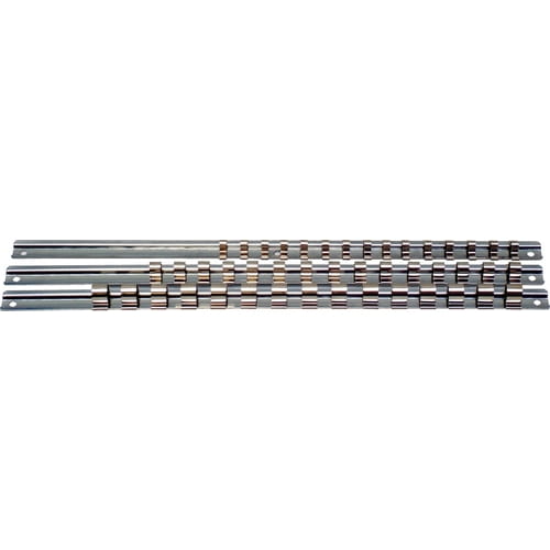 Listwy profilowe - Wykonane ze stali, jasne chromowe pokrycie i może być umieszczony w pudełku narzędziowym lub zawieszony na warsztacie lub ścianie. Może być użyty ze wszystkimi wielkościami kwadratowych gniazd. Klipsy opisane poniżej.