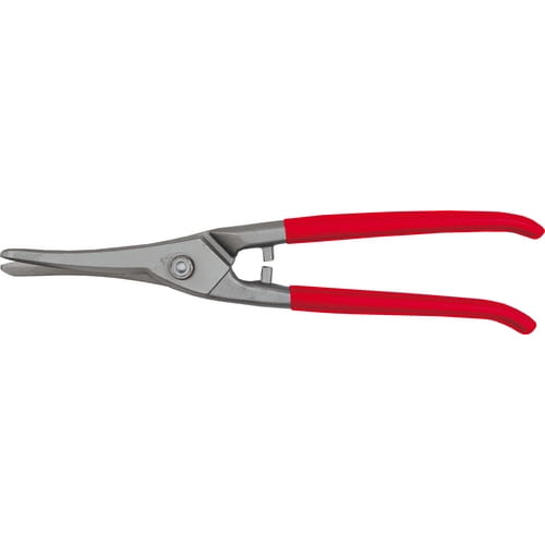 Wygięty kształt pozwala na stosowanie większej siły stosowanej bezpiecznie. Idealne do trudnych sytuacji cięcia blachy. Rękojeści pokryte PVC.