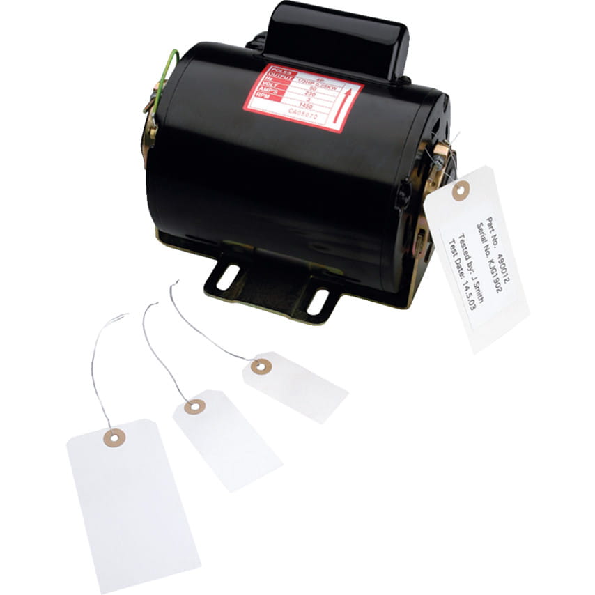 White Card tags with reinforced eyelets and 10" wire ties. Pack quantity: 1000. Images are for illustration purposes only