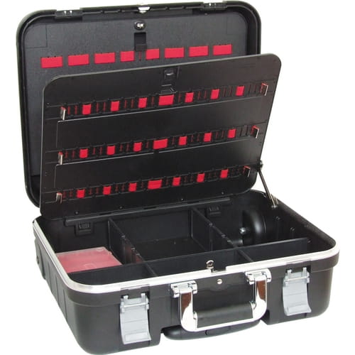 Ta walizka z mocnego polypropylenu jest odporna na działanie składników chemicznych, udary, wysokie & niskie temperatury. Technika wtrysku surowca zapewnia jednakową grubość nawet w rogach walizki. Szeroka i gruba rama aluminiowa, zapewnia stabilność w codziennym użytku. Walizka pomieści do 3 wkladek/paletek z narzędziami.