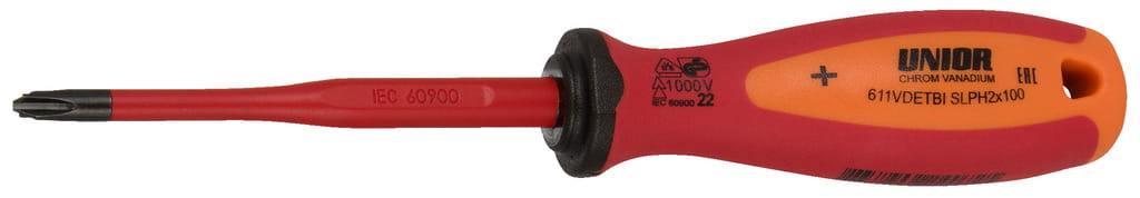 Wkrętak płaski i krzyżakowy (SL/PH) Slim z izolowanym grotem VDE TBI SLPH2x100 Unior (624072) 611VDETBI