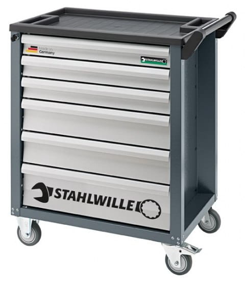 Wózek narzędziowy warsztatowy 6-Szufl.RAL 7016 antracyt szuflady RAL: 9006 szary; niemiecki wzór użytkowy (DBGM); 912x780x499mm max obciążenie: 25kg na szufladę; 300 kg na Wózek Stahlwille 81200000
