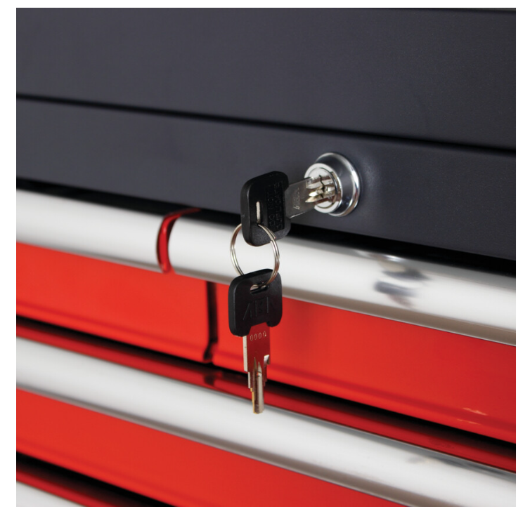 Nasza wszechstronna gama produktów do przechowywania narzędzi - połączenie maksymalnej pojemności z doskonałym wykończeniem. Gama solidnych i wytrzymałych produktów wykonana jest z dwuczęściowej konstrukcji ze stalowymi ścianami wewnętrznymi oraz wzmocnionymi panelami tylnymi dla większego bezpieczeństwa. Prostokątne narożniki chronią przed uszkodzeniami i pęknięciami podczas przesuwania oraz pozwalają dłużej zachować kształt produktu. Produkt posiada antykorozyjne i odporne na działanie rozpuszczalników wykończenie proszkowe. Szuflady z pełnym wysuwaniem o klasycznym wzorze zapewniają łatwy dostęp, mimo ładowności wynoszącej aż 40-45 kg. Zwiększona ładowność szuflady umożliwia przechowywanie większości narzędzi i może być załadowana do pełna.