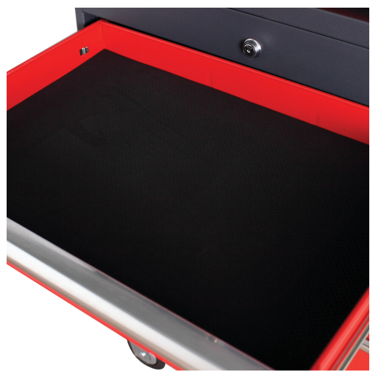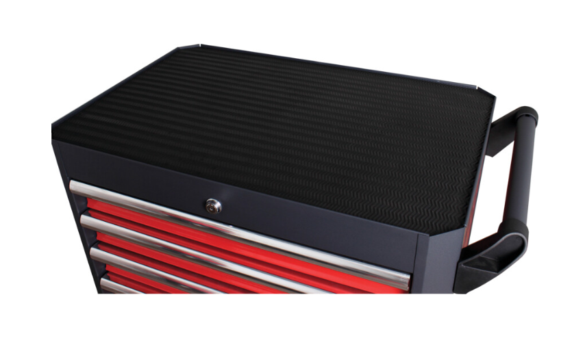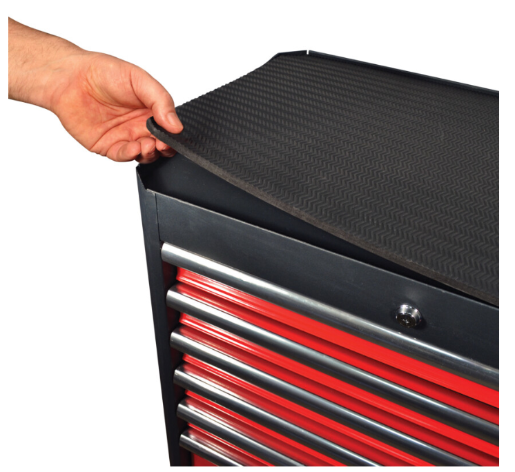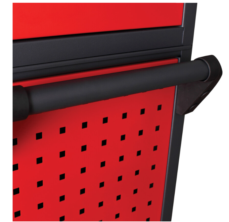 Antykorozyjne i odporne na działanie rozpuszczalników wykończenie proszkowe, na dłużej zachowuje powłokę i chroni przed zadrapaniami. Perforowane boki zwiększają przestrzeń przechowywania, umożliwiając mocowanie akcesoriów i uchwytów do narzędzi, umożliwiając mocowanie akcesoriów i uchwytów do narzędzi. Narożniki o kącie nachylenia 45° chronią przed uszkodzeniami i pęknięciami podczas przesuwania oraz pozwalają dłużej zachować kształt produktu. Plastikowe amortyzatory na każdym rogu chronią przed uderzeniami. Górna, antypoślizgowa mata z 10-milimetrowego tworzywa EVA zapobiega uszkodzeniom i zapewnia ochronę narzędzi. Górna taca z tworzywa ABS dostępna osobno.