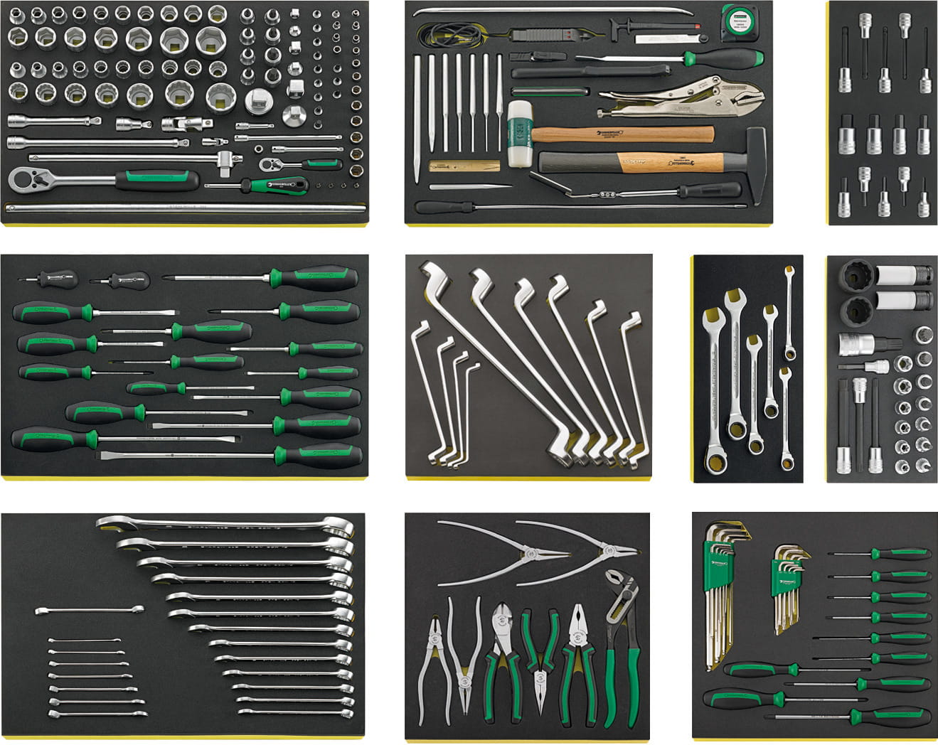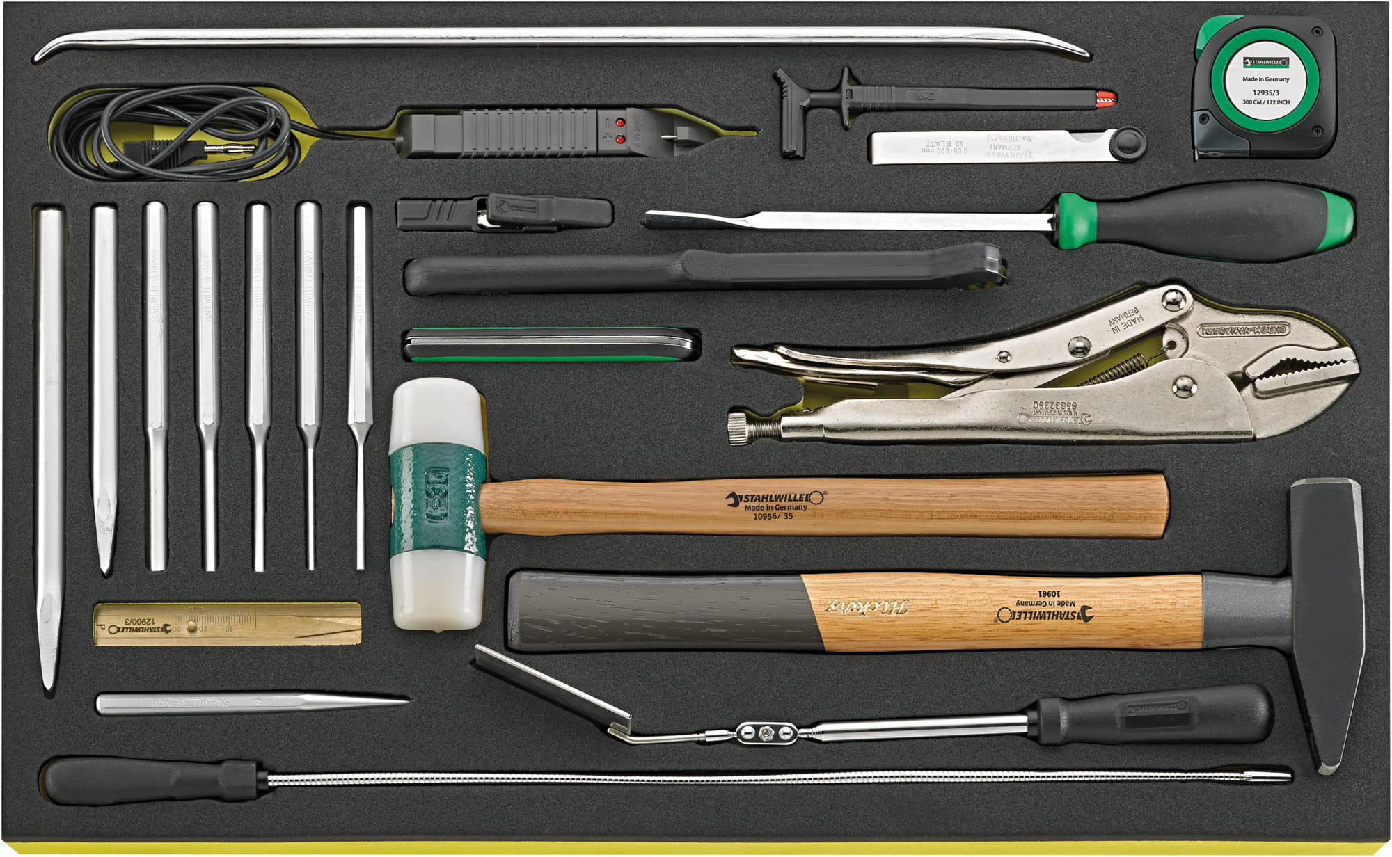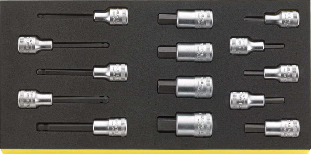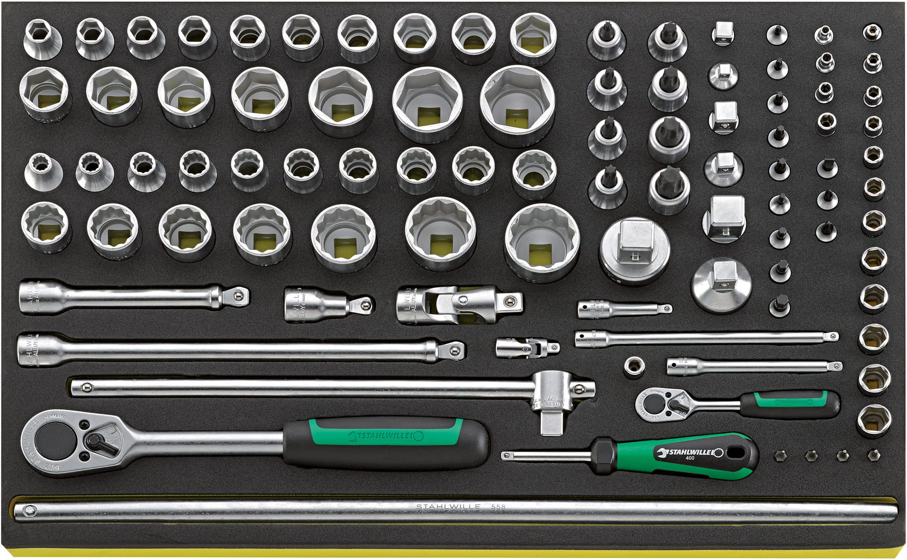 Grupa narzędziowa Stahlwille:| 210 narzędzi, w wytłoczkach TCS, wytłoczki z tworzywa 7x1/3, 1x2/3 i 4x3/3 do 7 szuflad (Nr 91P do 3,5 szuflad). |