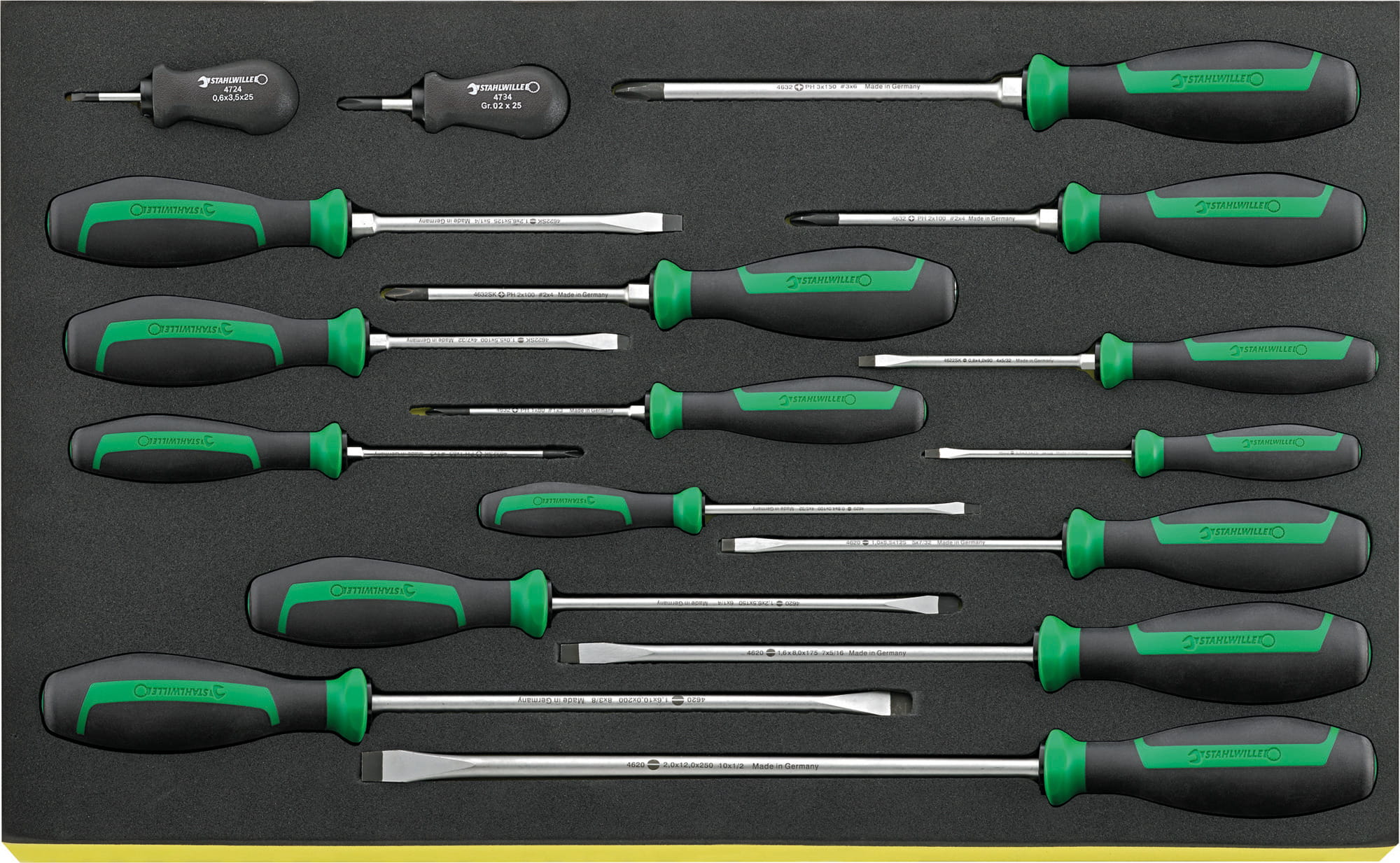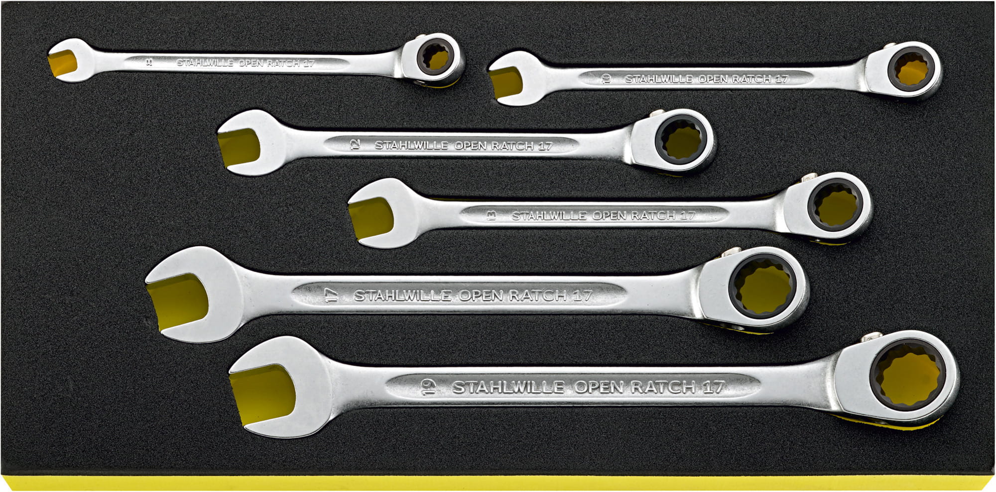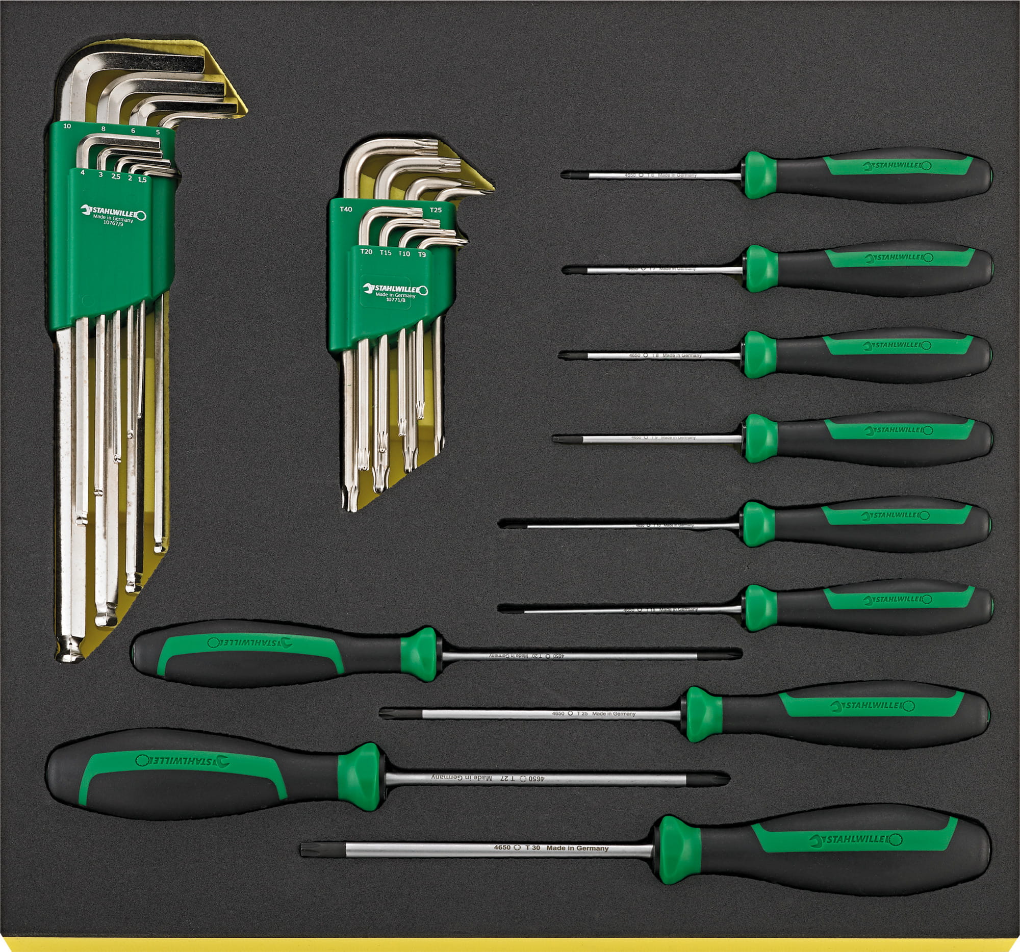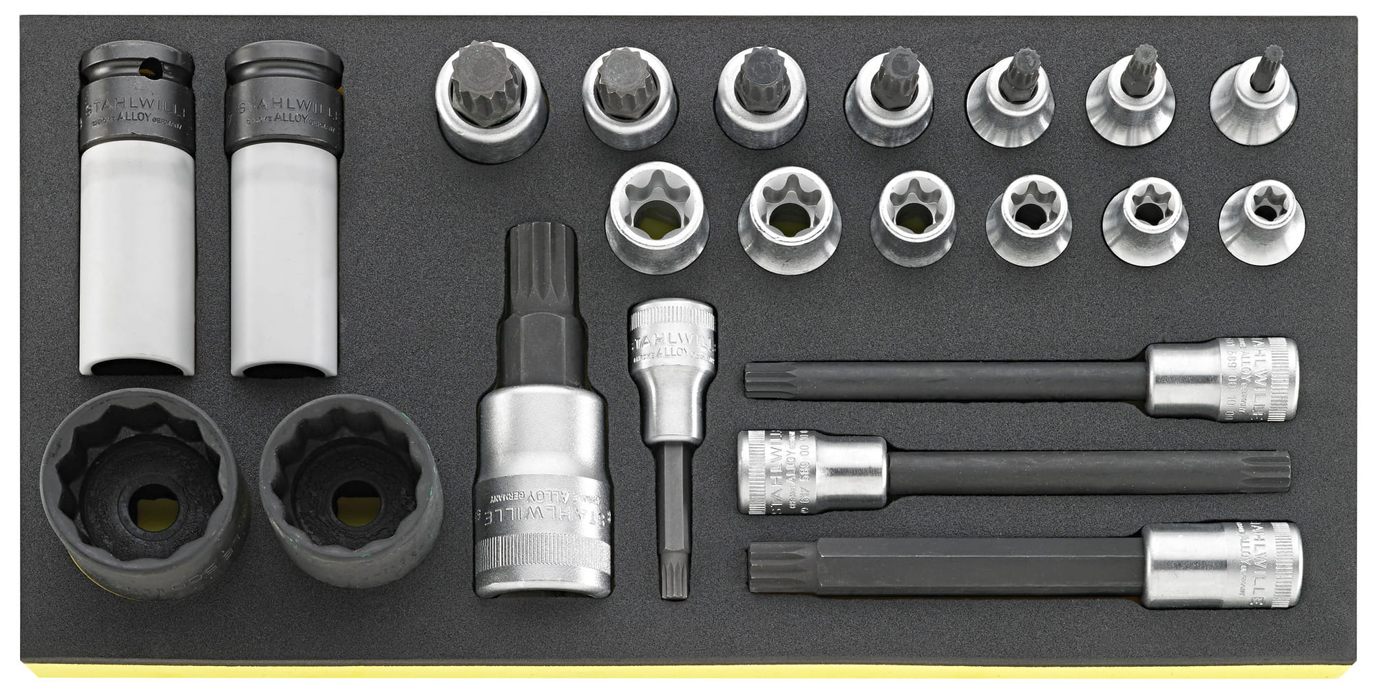Grupa narzędziowa Stahlwille:| 210 narzędzi, w wytłoczkach TCS, wytłoczki z tworzywa 7x1/3, 1x2/3 i 4x3/3 do 7 szuflad (Nr 91P do 3,5 szuflad). |