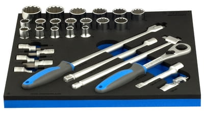 Zestaw kluczy nasadowych 1/2" we wkładce SOS zawiera:
