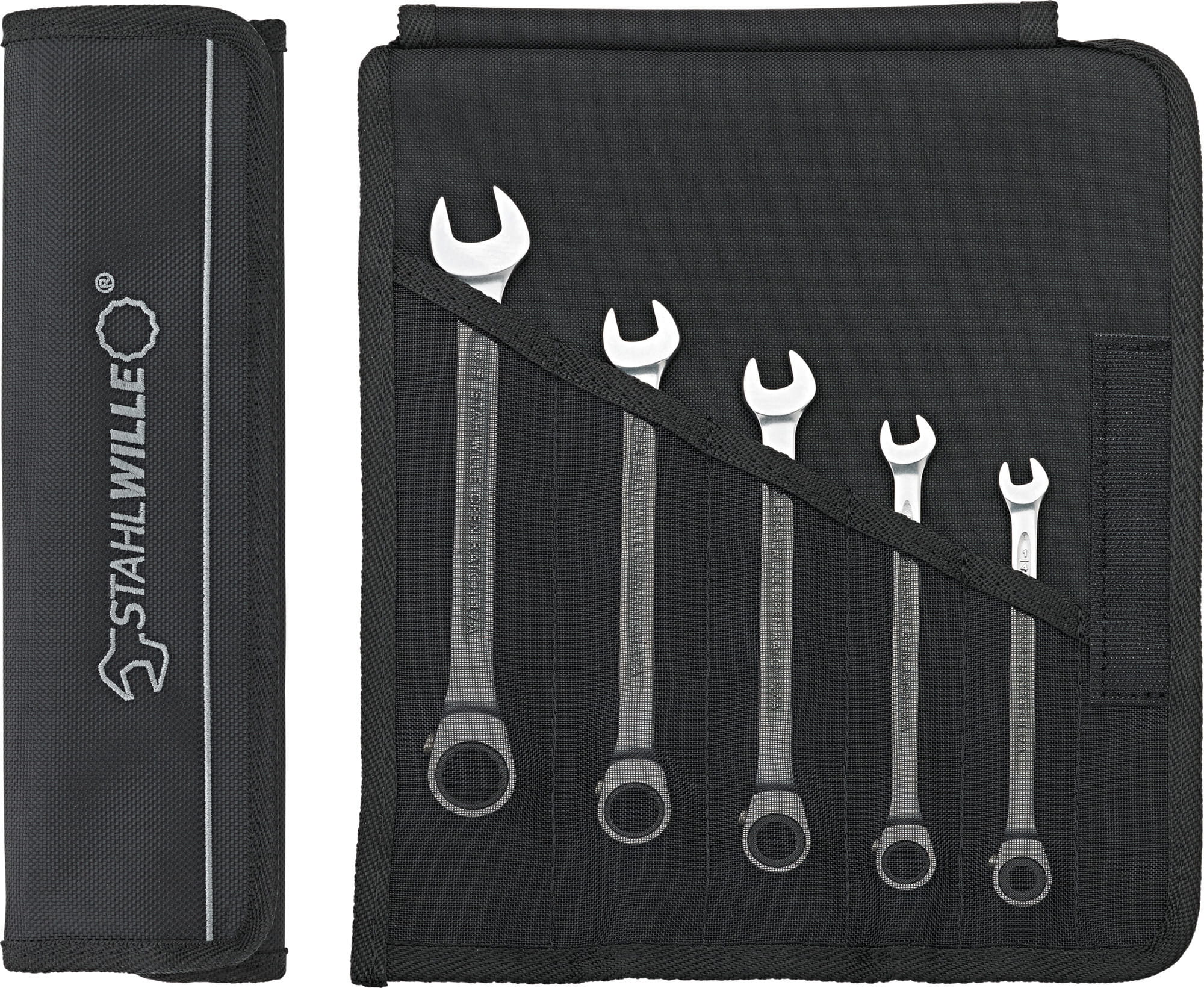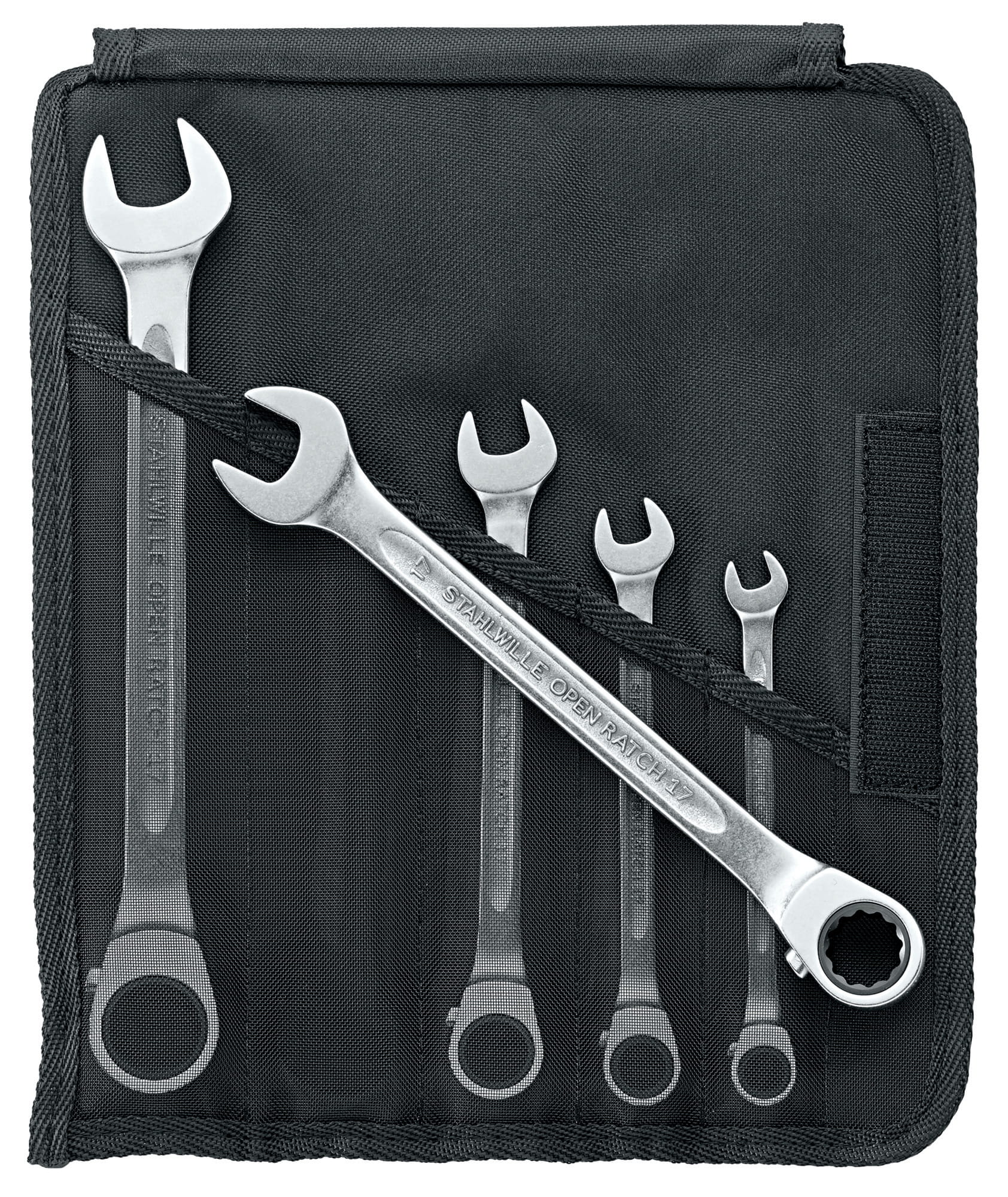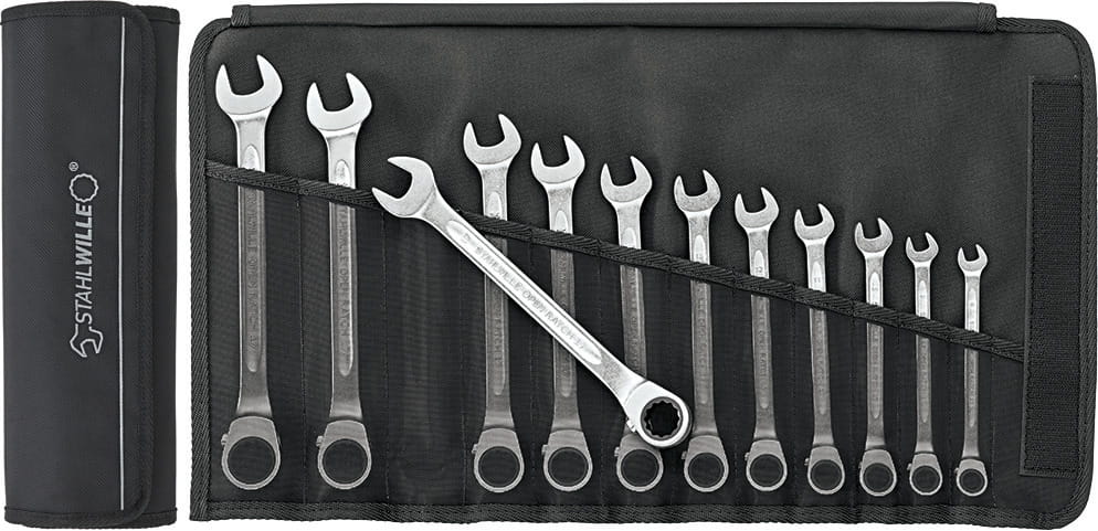 Grupa narzędziowa Stahlwille: 17 - Zestawy: OPEN-RATCH klucze płasko-oczkowe z grzechotką w zwijanym pokrowcu