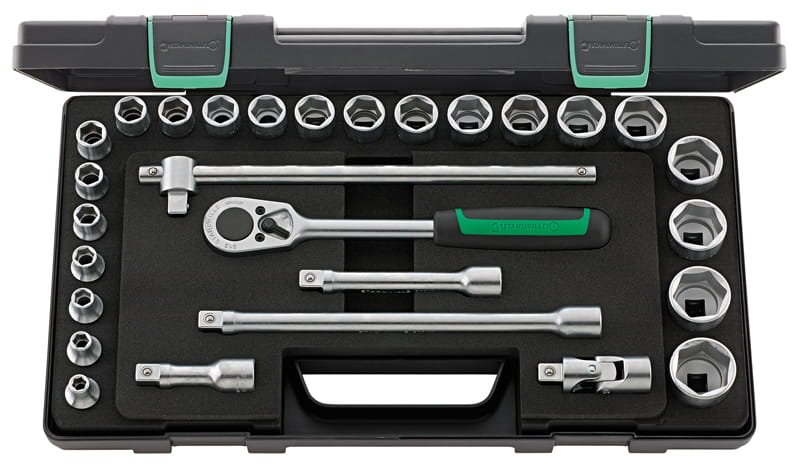 Grupa narzędziowa Stahlwille: 52/22/6 - Komplet kluczy nasadowych 1/2" Grupa narzędziowa Stahlwille: w wytrzymałej, kompatybilnej skrzynce z tworzywa sztucznego ABS,