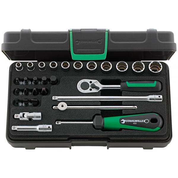 Grupa narzędziowa Stahlwille: 40D/23/6 - Komplet kluczy nasadowych 1/4" Grupa narzędziowa Stahlwille: w wytrzymałej, kompatybilnej skrzynce z tworzywa sztucznego ABS,