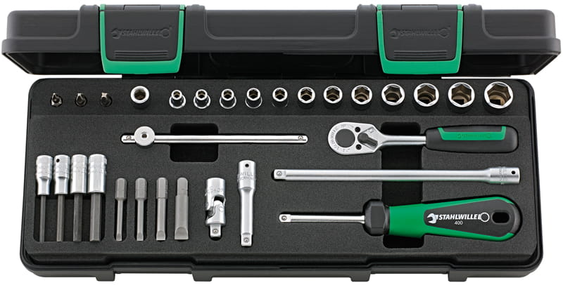 Grupa narzędziowa Stahlwille: 40/23/7 - Komplet kluczy nasadowych 1/4" Grupa narzędziowa Stahlwille: w wytrzymałej, kompatybilnej skrzynce z tworzywa sztucznego ABS,