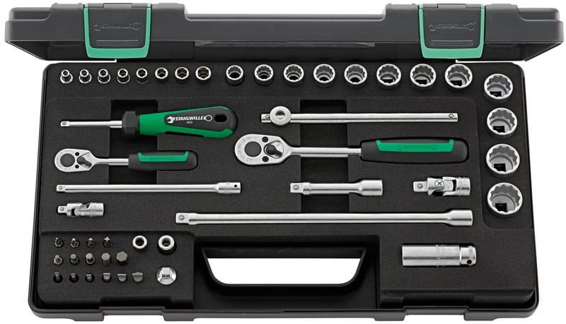 Grupa narzędziowa Stahlwille: 40/45/36/12 - Komplet kluczy nasadowych 1/4"; 3/8" Grupa narzędziowa Stahlwille: w wytrzymałej, kompatybilnej skrzynce z tworzywa sztucznego ABS,