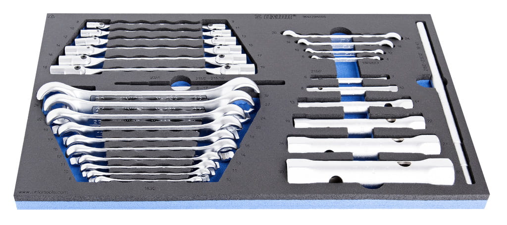 - Klucz płasko - oczkowy, typ długi 18szt: 6, 7, 8, 9, 10, 11, 13, 14, 15, 16, 17, 18, 19, 20, 21, 22, 24, 27