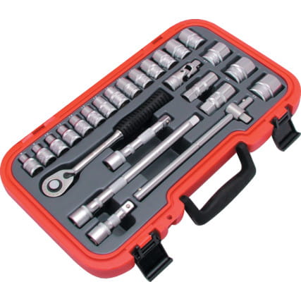 Akcesoria: Grzechotka szybko zwalniająca, przetyczka, przegub uniwersalny, 75, 125 i 250mm, przedłużacze. Solidna dopasowana kaseta plastikowa z otworem na kłódkę i uchwytem.
