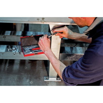 Akcesoria:uchwyt z grzechotką, uchwyt obrotowy, uchwyt typu T z przesuwnym trzpieniem, napęd elastyczny 145mm, łącznik przegubowy, przedłużka 100.